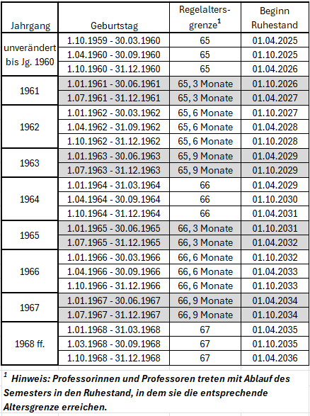 Übersicht geplante Regelaltersgrenze bis JG 1968 (nach aktuellem Gesetzentwurf, ohne Gewähr)
